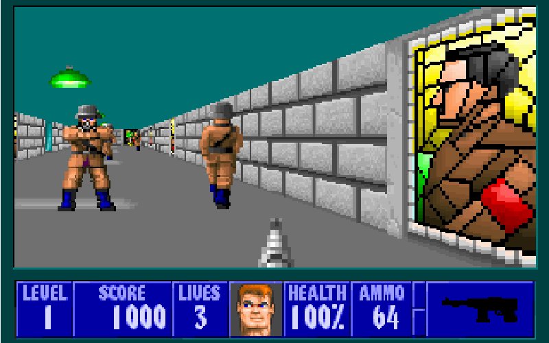 Wolfenstein 3D is a first-person shooter video game developed by id Software and published by 3D Realms. it was inspired by the 1981 Muse Software video game Castle Wolfenstein. In Wolfenstein 3D, the player assumes the role of Allied spy William B.J. Blazkowicz during World War II as he escapes from the Nazi German prison Castle Wolfenstein and carries out a series of crucial missions against the Nazis, fighting his way through hordes of enemies and foiling their sinister schemes.